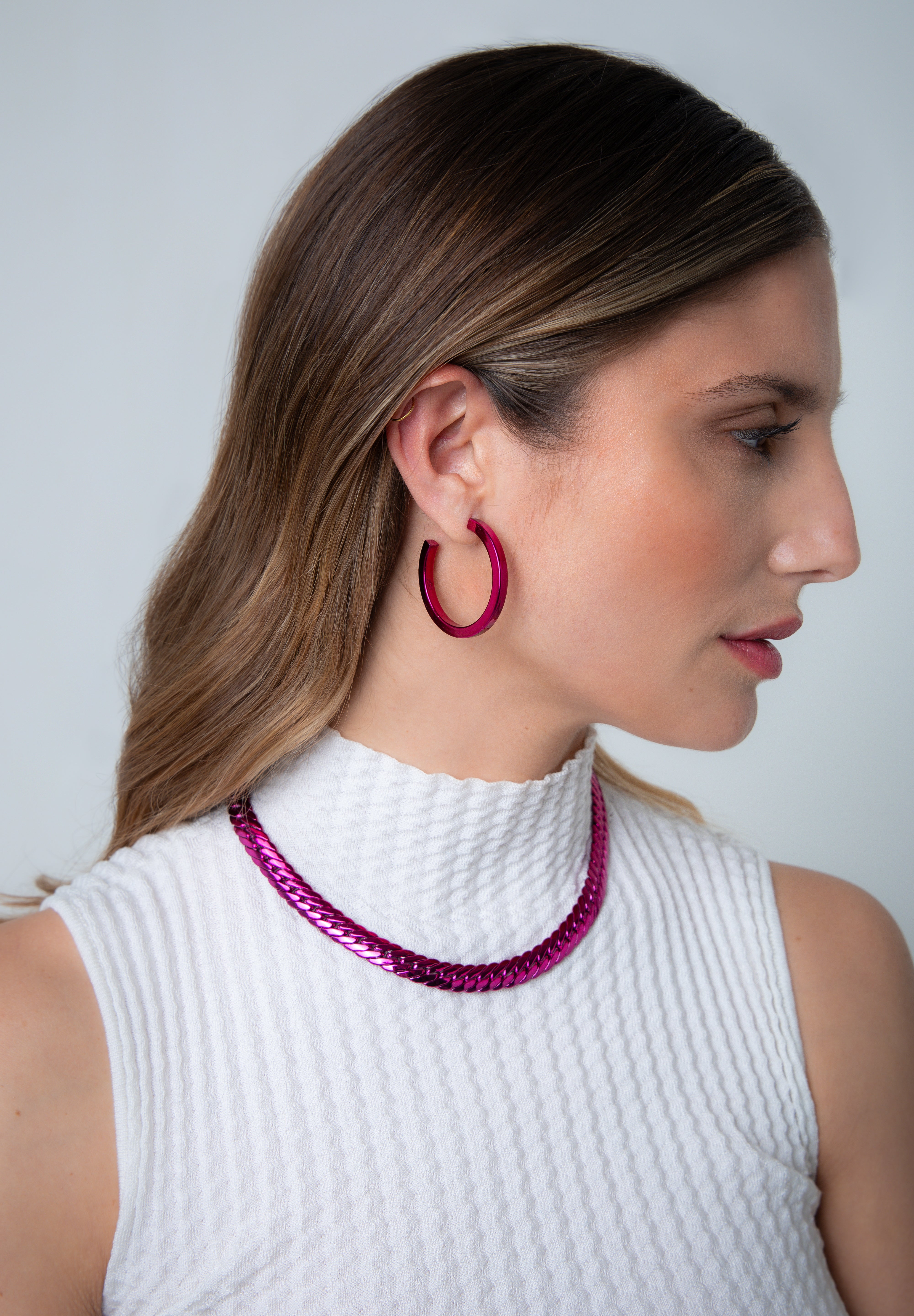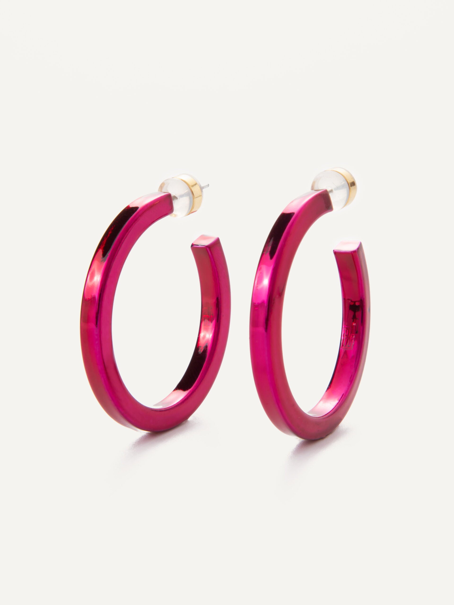 Flat thick round earring hoops that are the epitome of trendy comfort for their unique style and astonishing light weight.