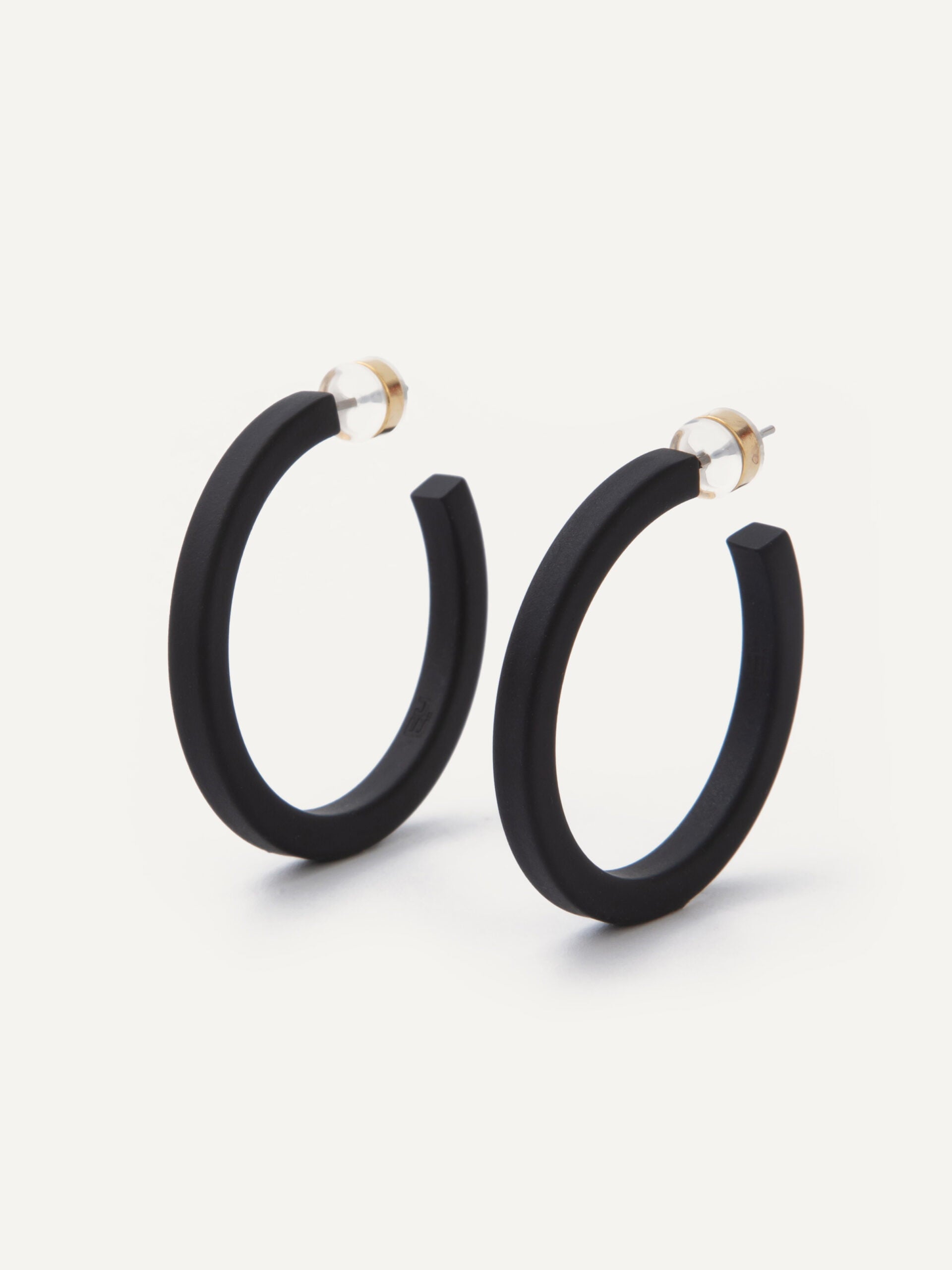 Flat thick round earring hoops that are the epitome of trendy comfort for their unique style and astonishing light weight.
