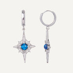 Radiant star-shaped drops framed in pavé crystals with a vibrant blue center, designed to catch the light and elevate any look.