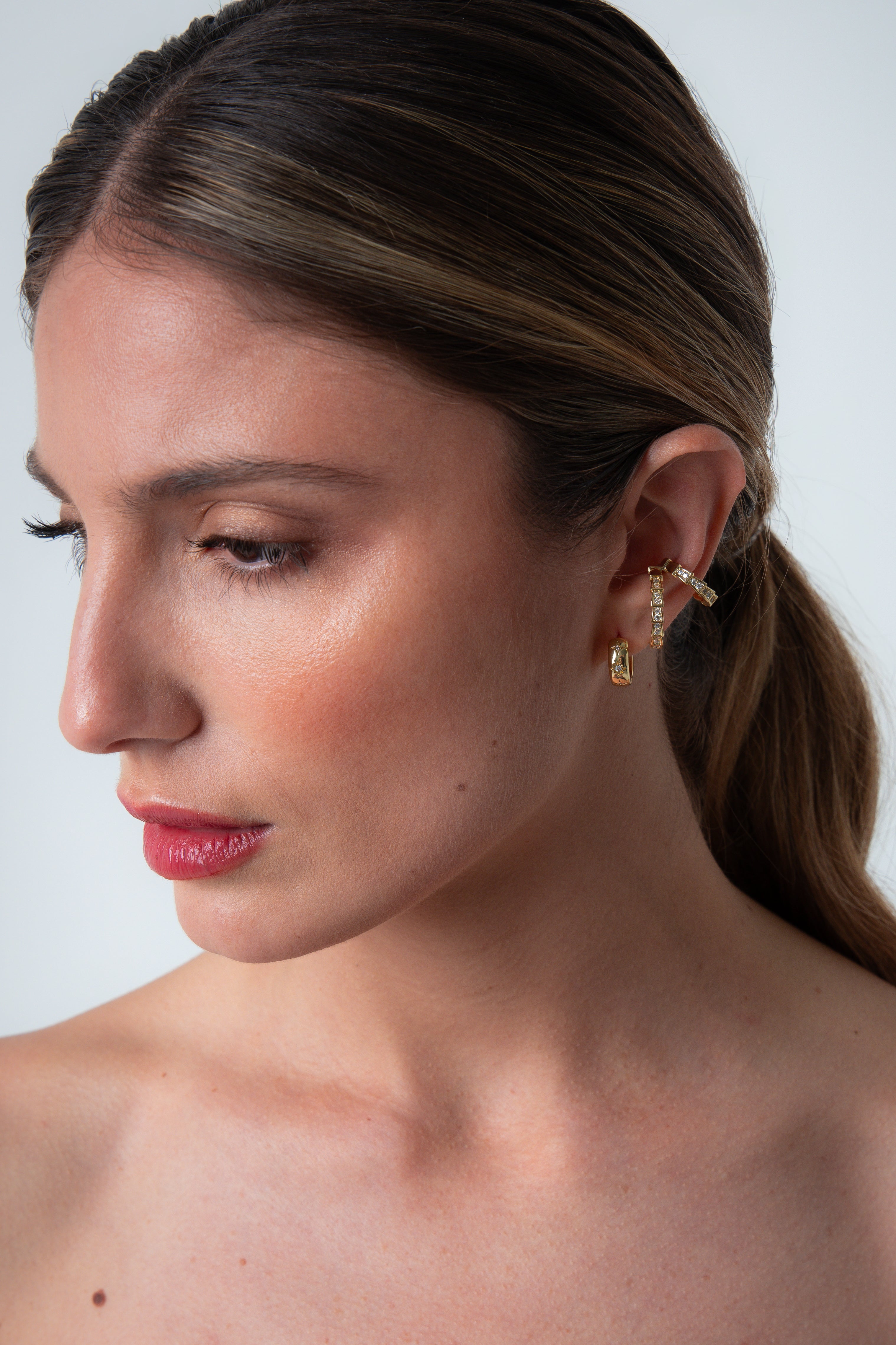 A geometric ear cuff accented with bezel-set crystals, offering a structured yet refined edge.
