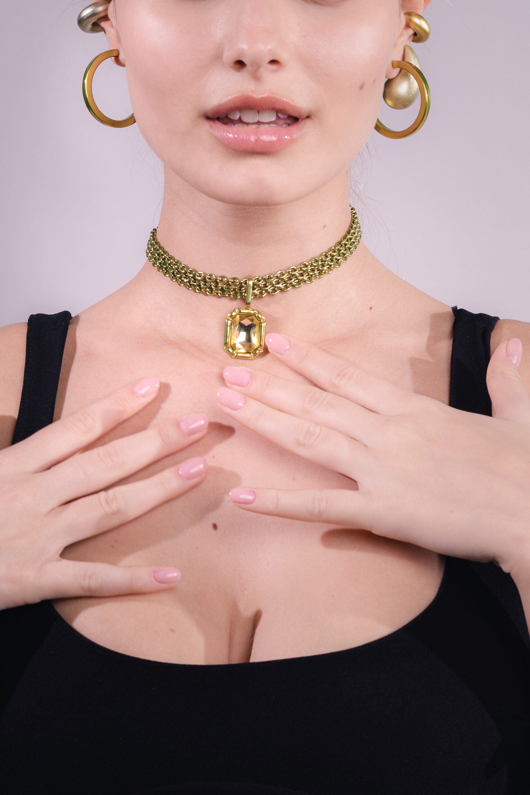 The Raine choker brings a playful twist on vintage elegance. The bold and funky colors breathe new life into this classic style choker piece, making it a standout accessory. The large crystal pendant adds a touch of glamour, creating a unique and vibrant look that merges the best of both worlds.