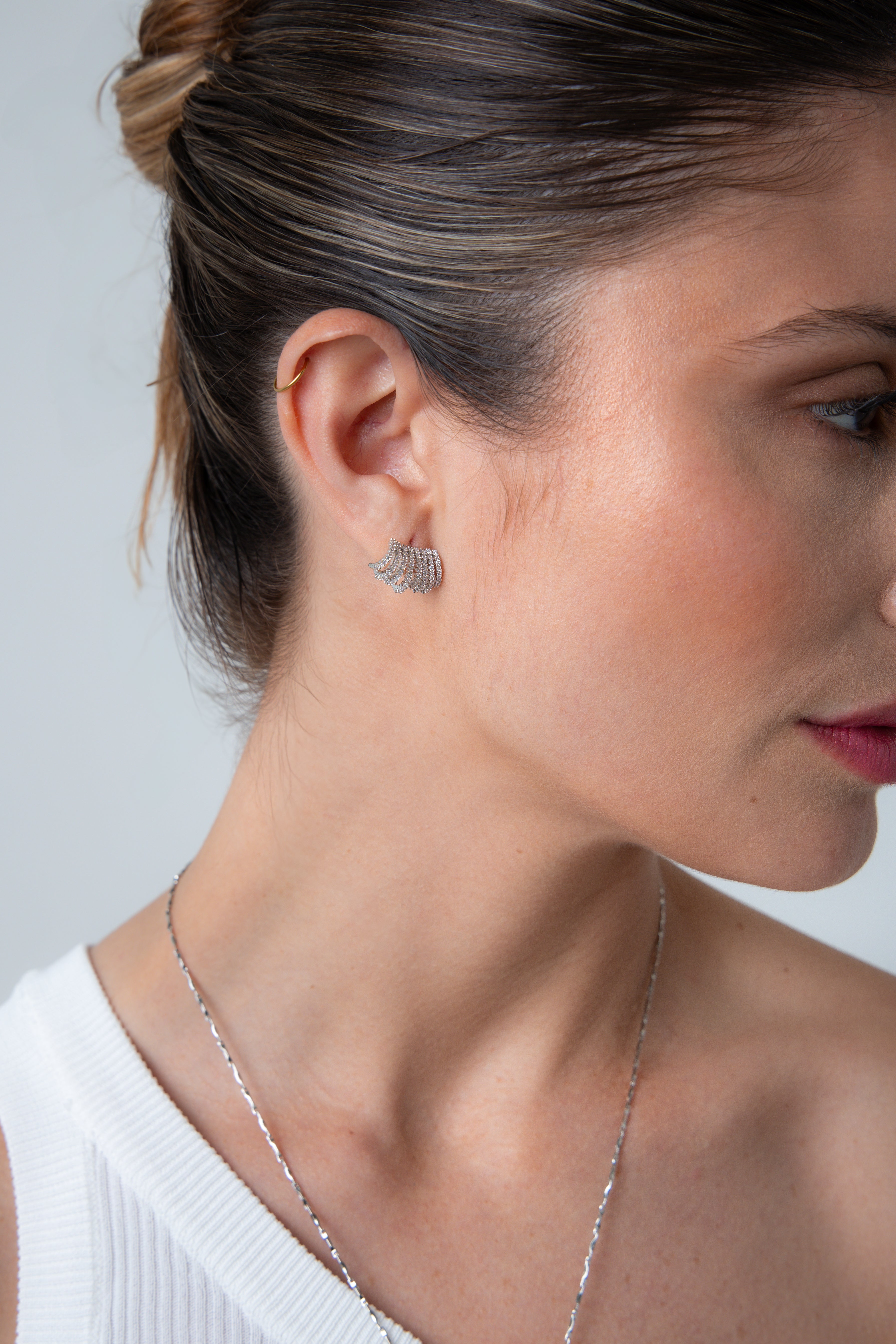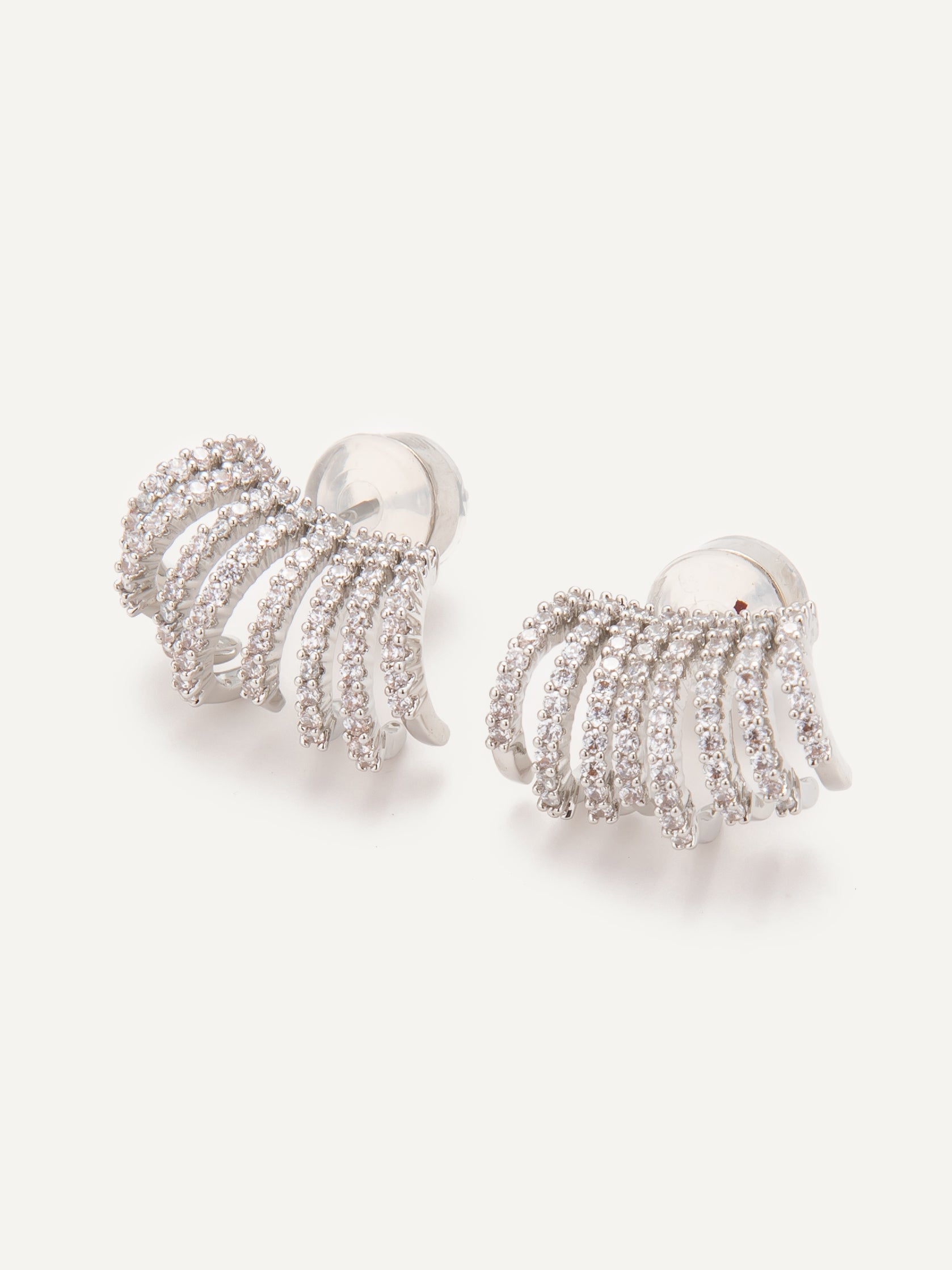 Radiant fan-shaped studs lined with pavé crystals, designed to frame the ear with subtle movement and shine.