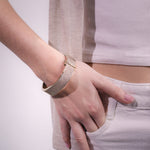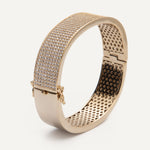 Statement rectangular bracelet cuff with cubic zirconia crystals.