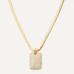 A solo statement or a layering queen, this necklace with a bold rectangular pendant adorned with cubic zirconia crystals creates a focal point of timeless glamour. Two necklaces in one: Use the lobster clasp on the back to remove the pendant and wear as a solo chain, or add the pendant to another chain.