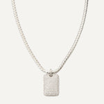 A solo statement or a layering queen, this necklace with a bold rectangular pendant adorned with cubic zirconia crystals creates a focal point of timeless glamour. Two necklaces in one: Use the lobster clasp on the back to remove the pendant and wear as a solo chain, or add the pendant to another chain.