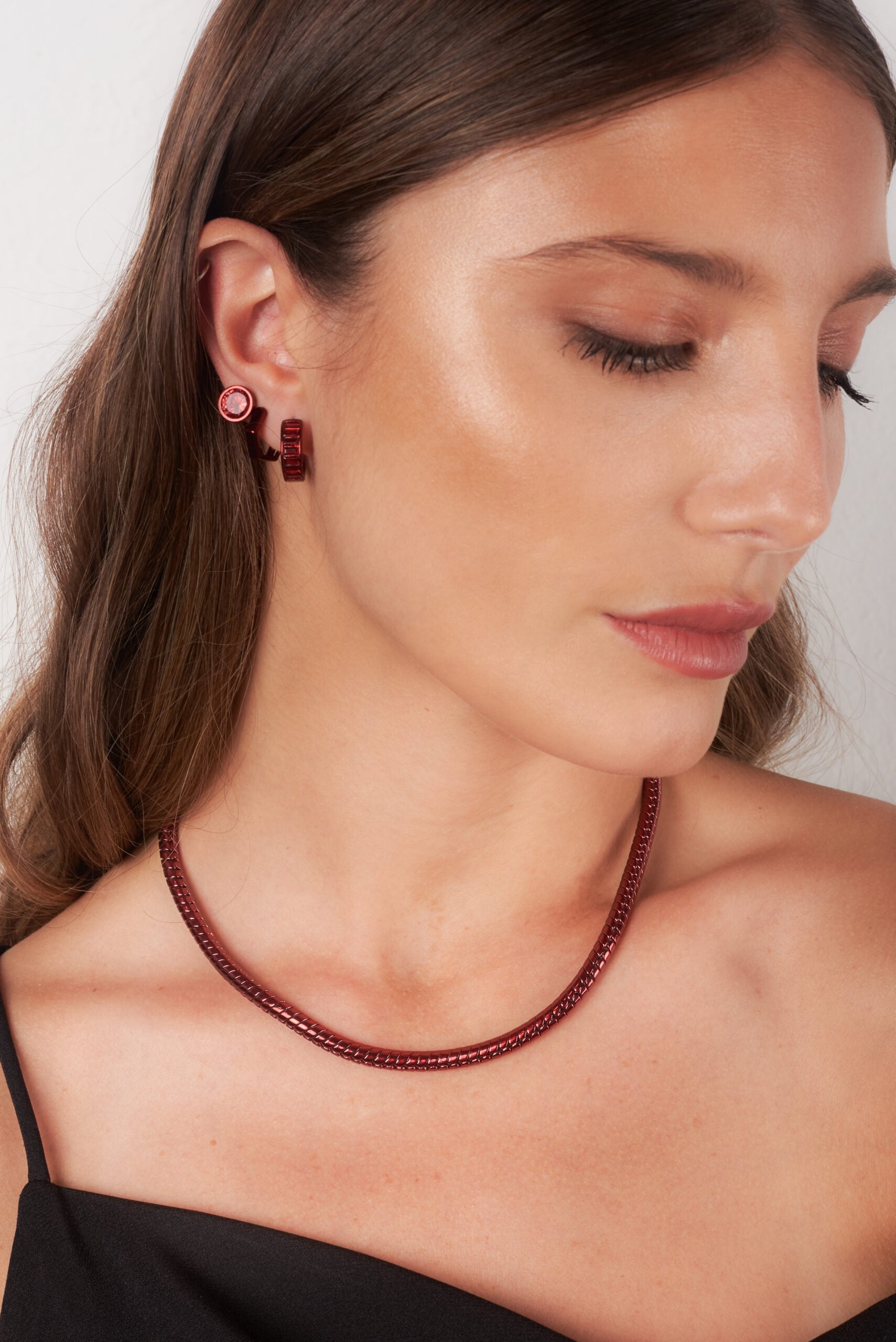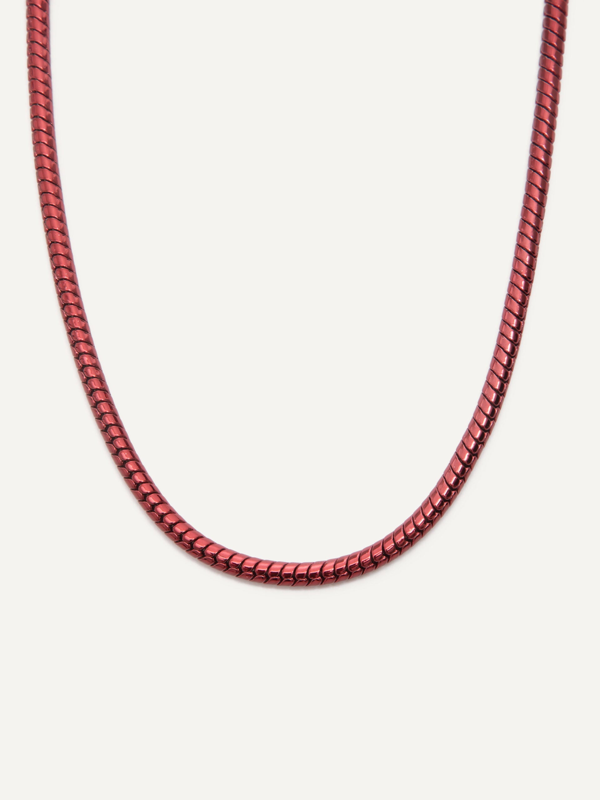 Stand out with our Sierra Necklace: Unique bold cord design, coated in a sophisticated metallic red that radiates modern elegance.