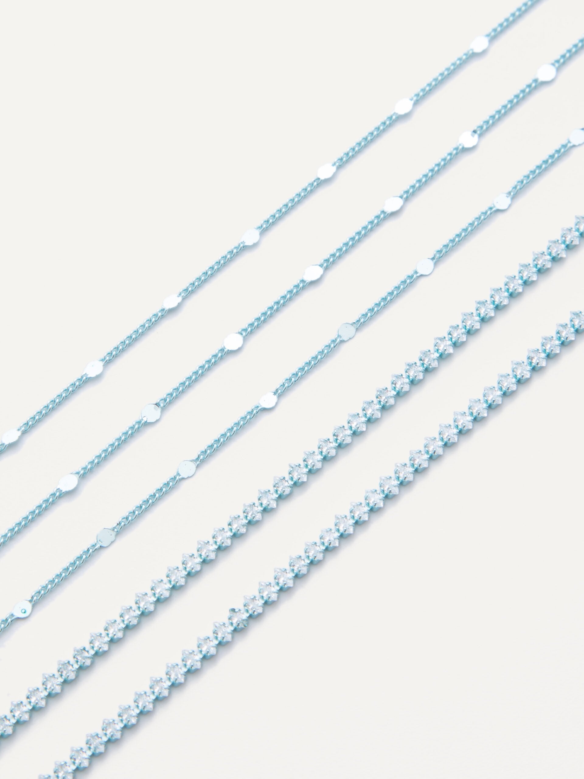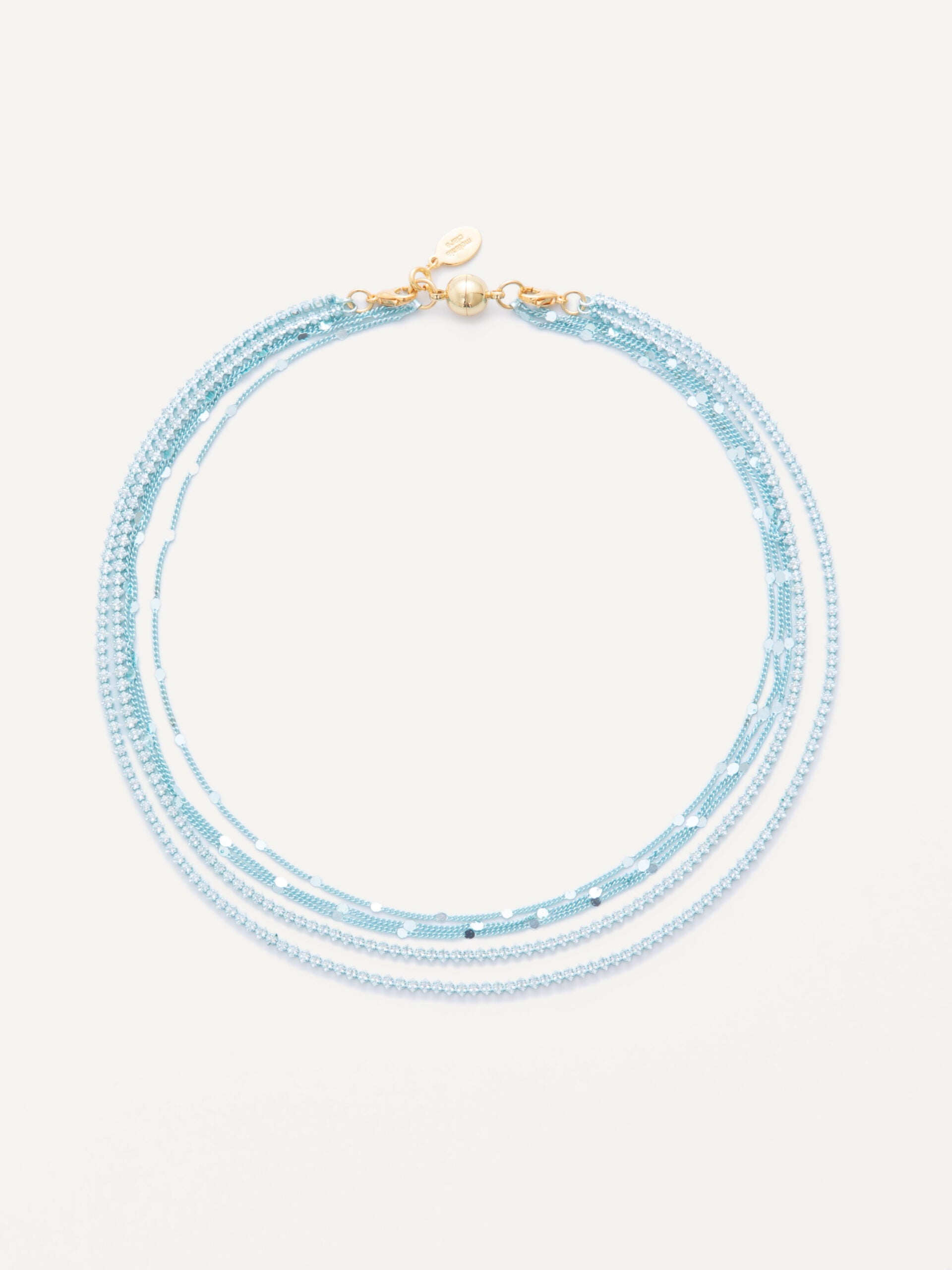 Four layered cubic zirconia pave crystals chains with shiny chains necklace. Detachable layers.