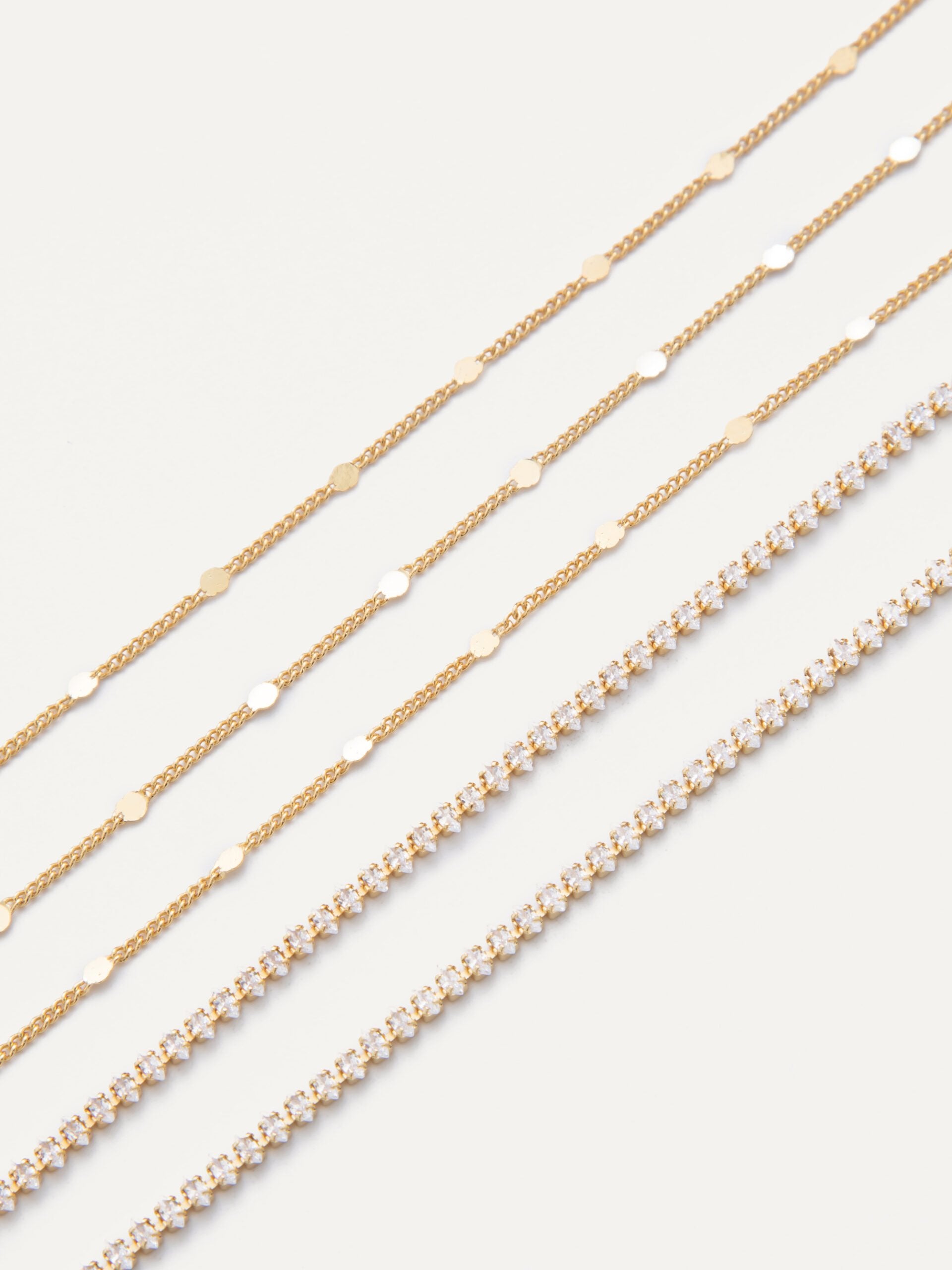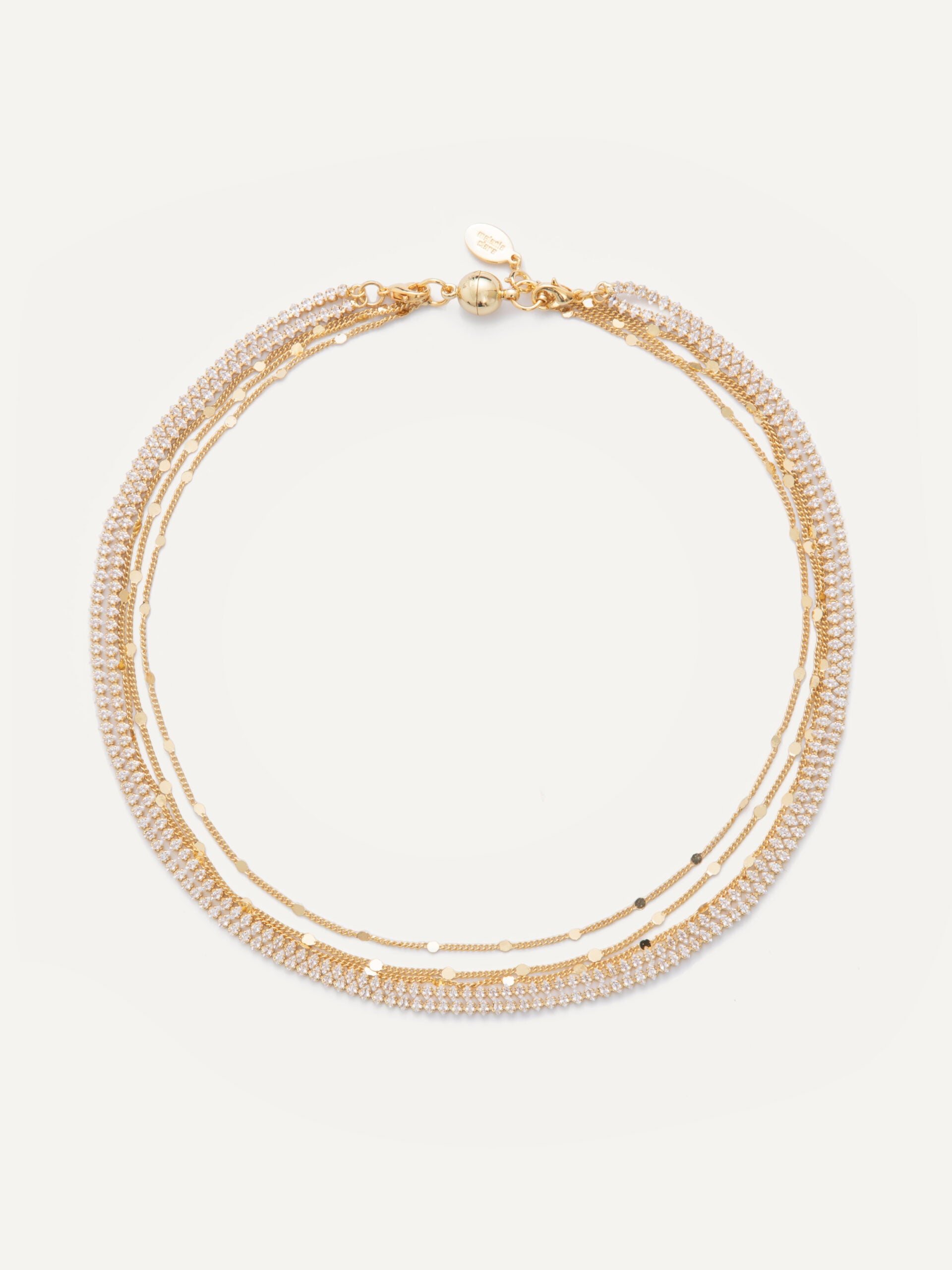 Four layered cubic zirconia pave crystals chains with shiny chains necklace. Detachable layers.