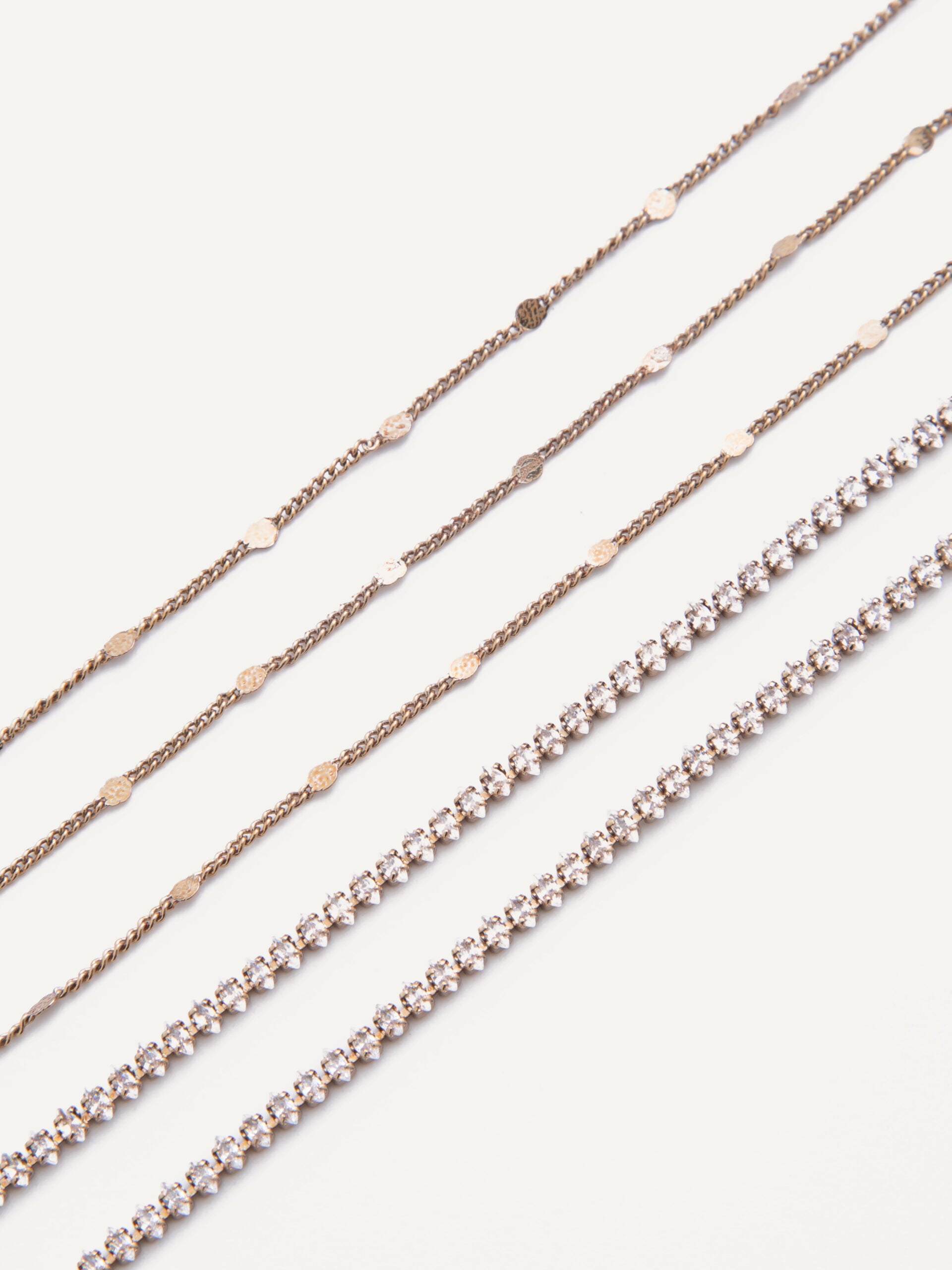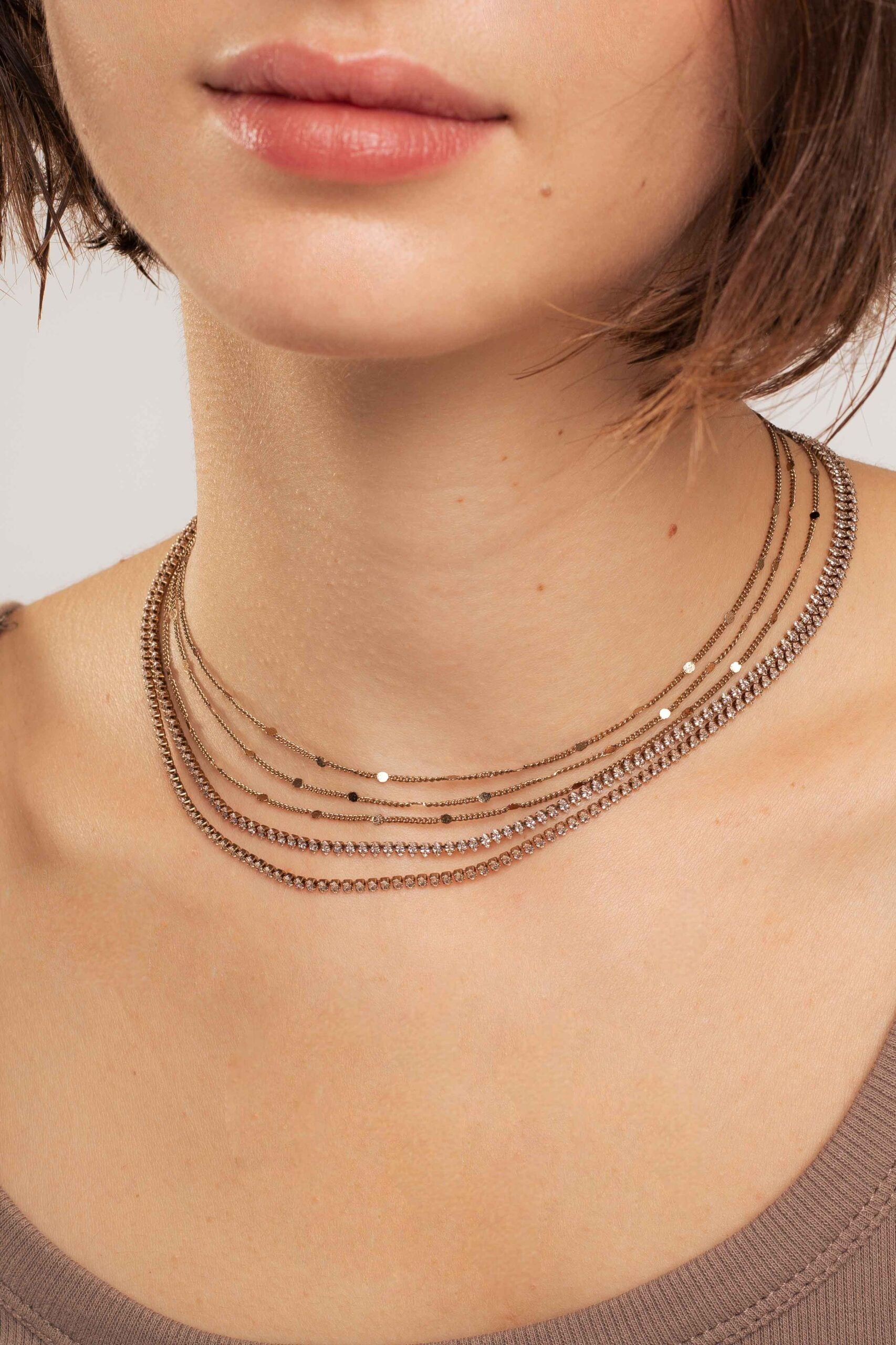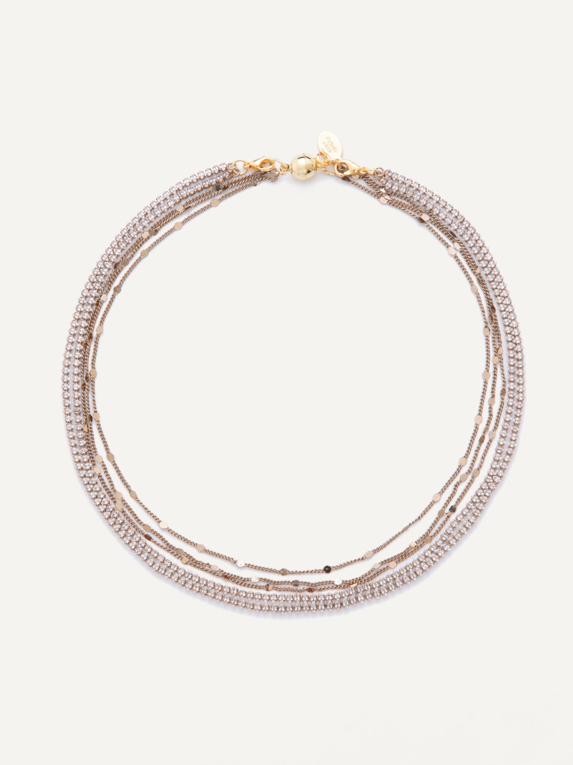 Four layered cubic zirconia pave crystals chains with shiny chains necklace. Detachable layers.