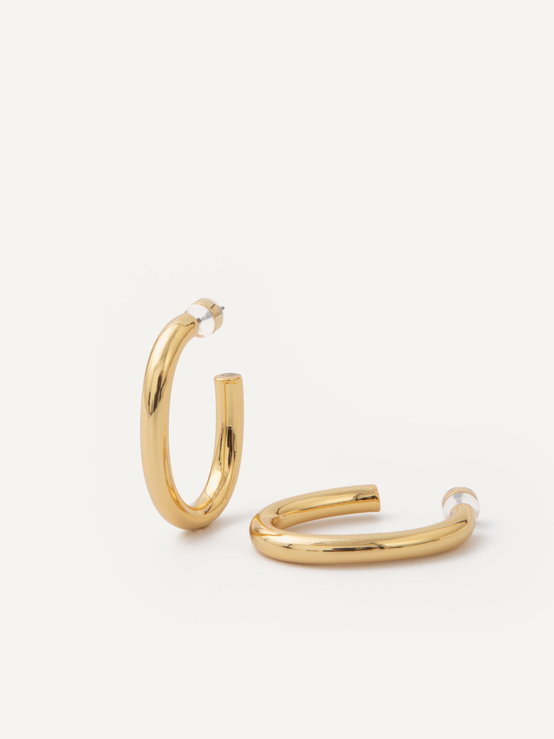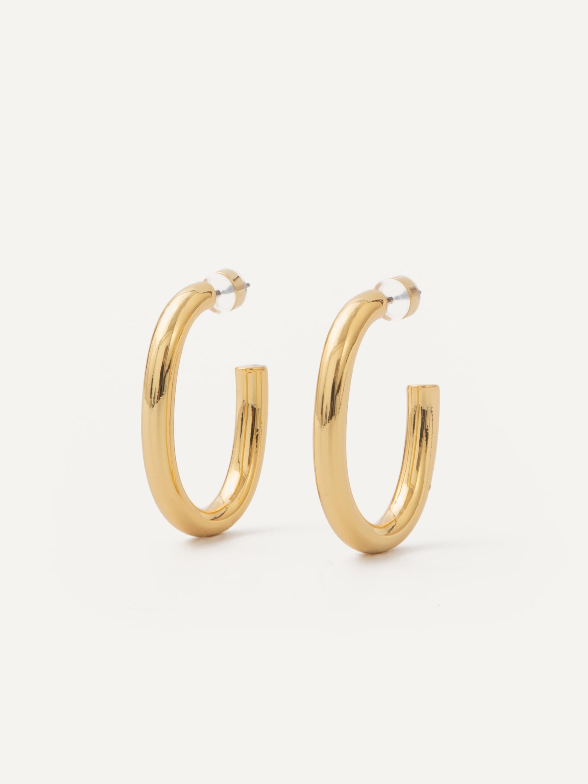 Thick rounded oval hoops with post back. Lightweight.