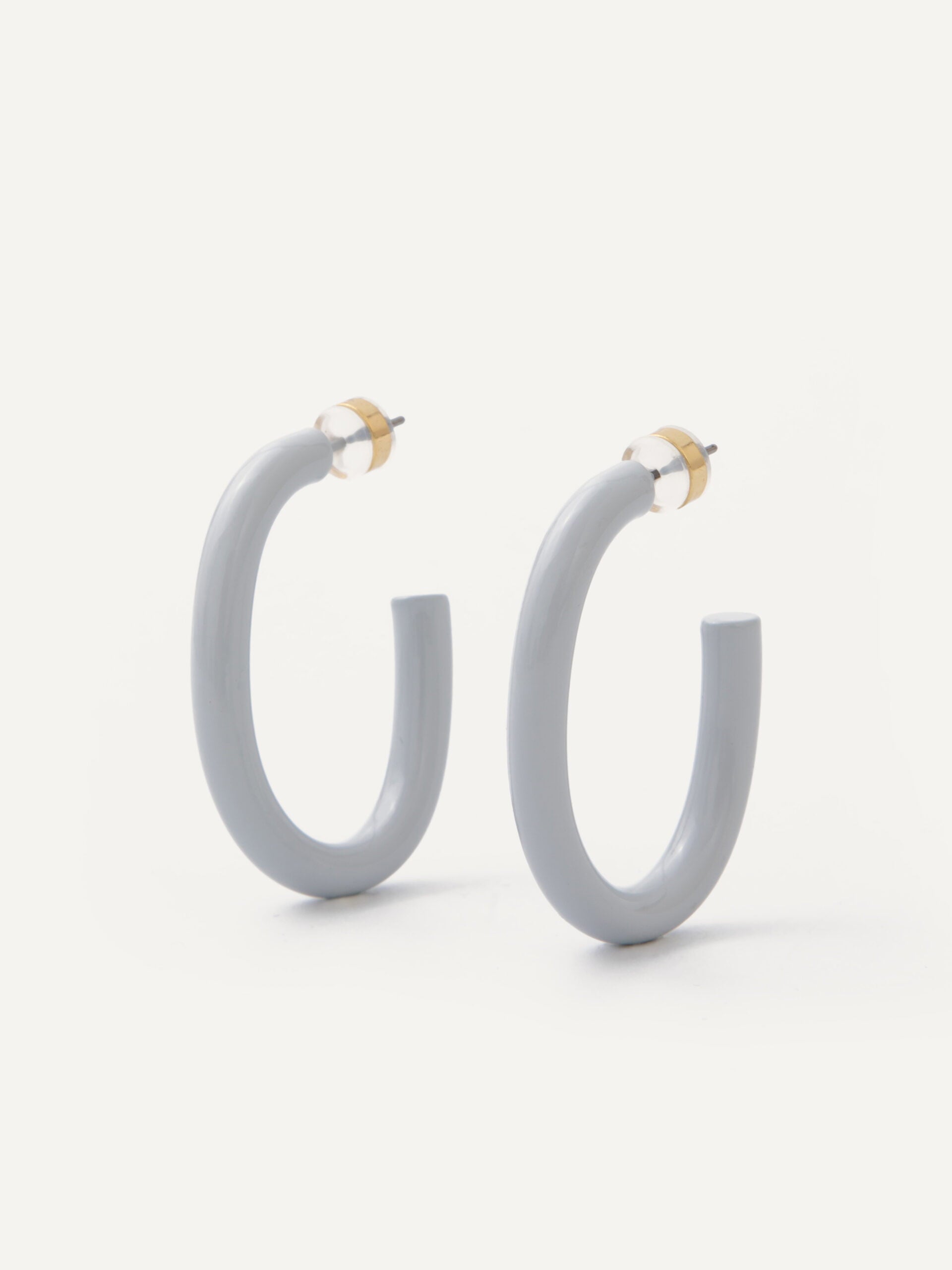 Thick rounded oval hoops with post back. Lightweight.