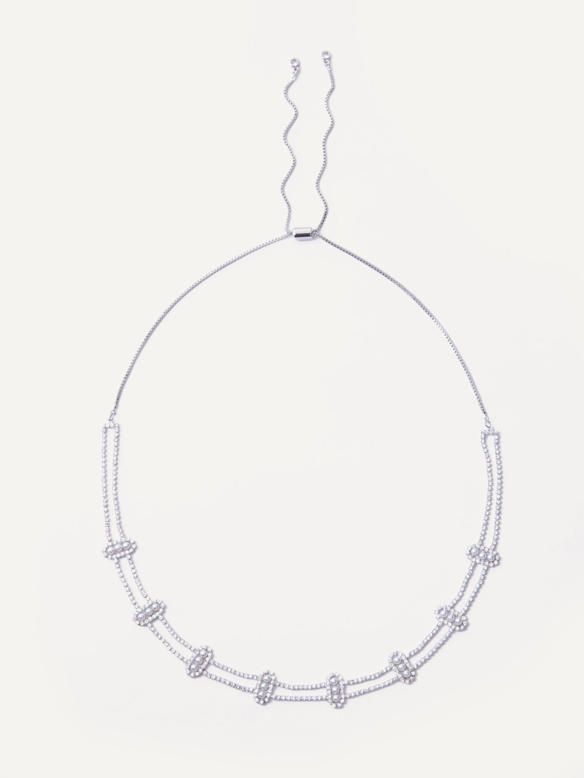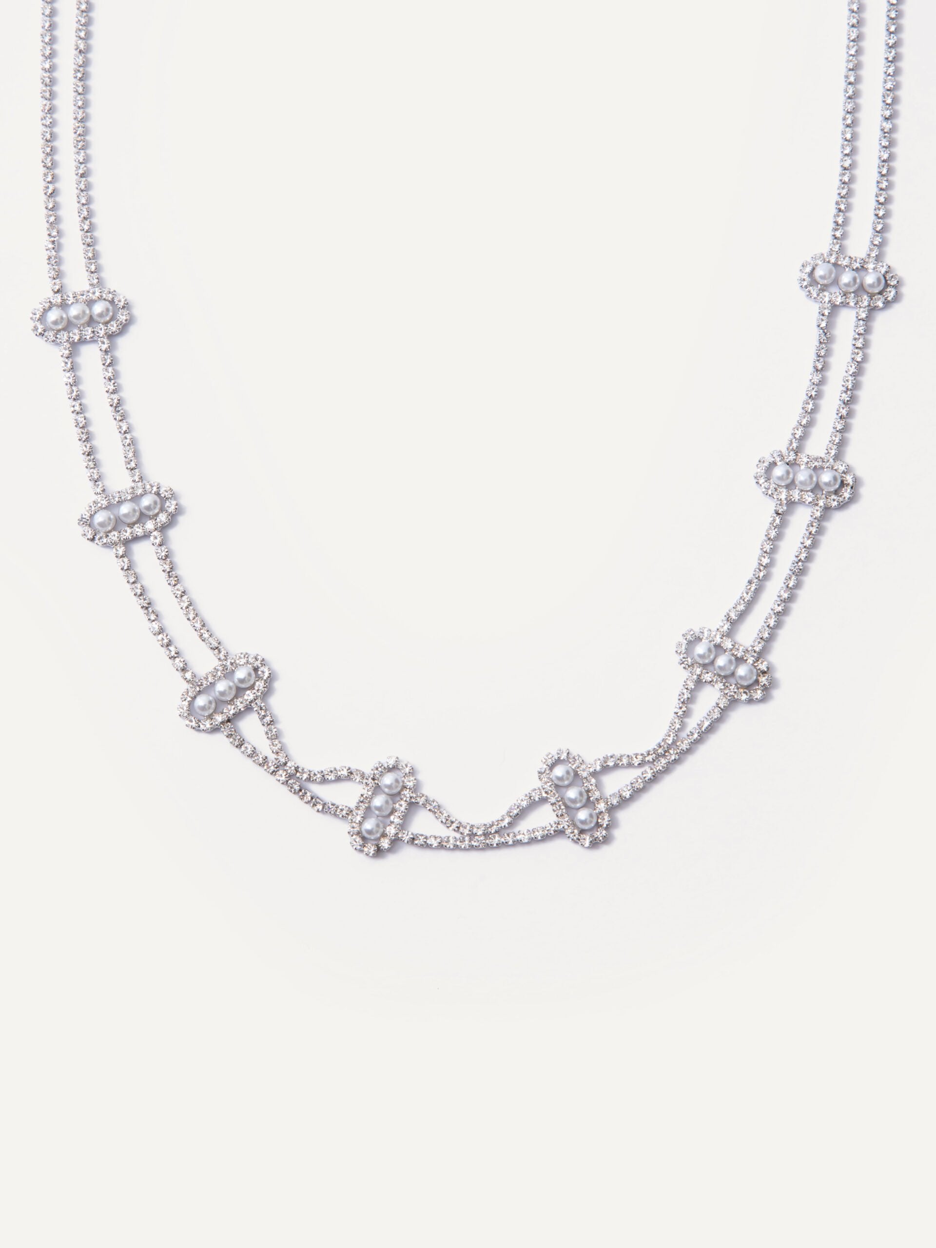 Transport yourself to the glamour of old Las Vegas with our vintage inspired choker. This exquisite piece combines the timeless elegance of pearls with the dazzling sparkle of cubic zirconia crystals, capturing the essence of a bygone era.