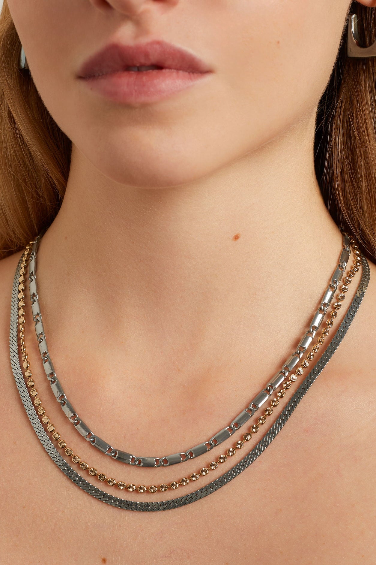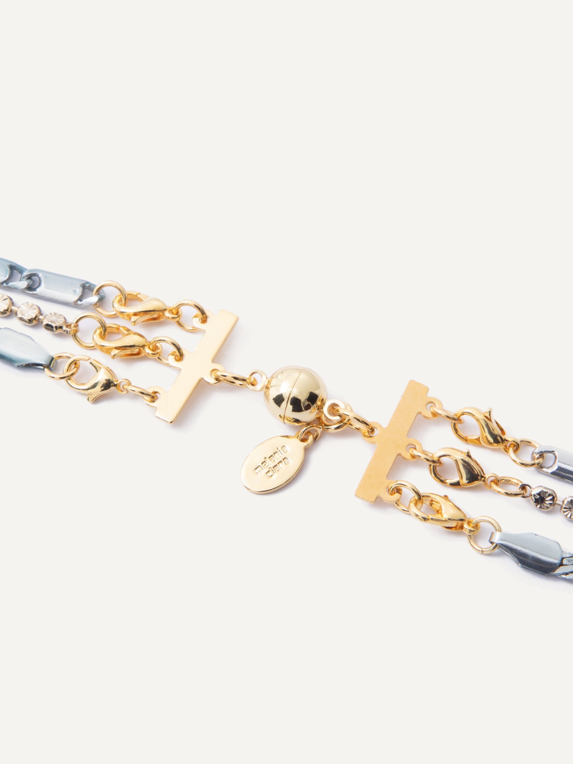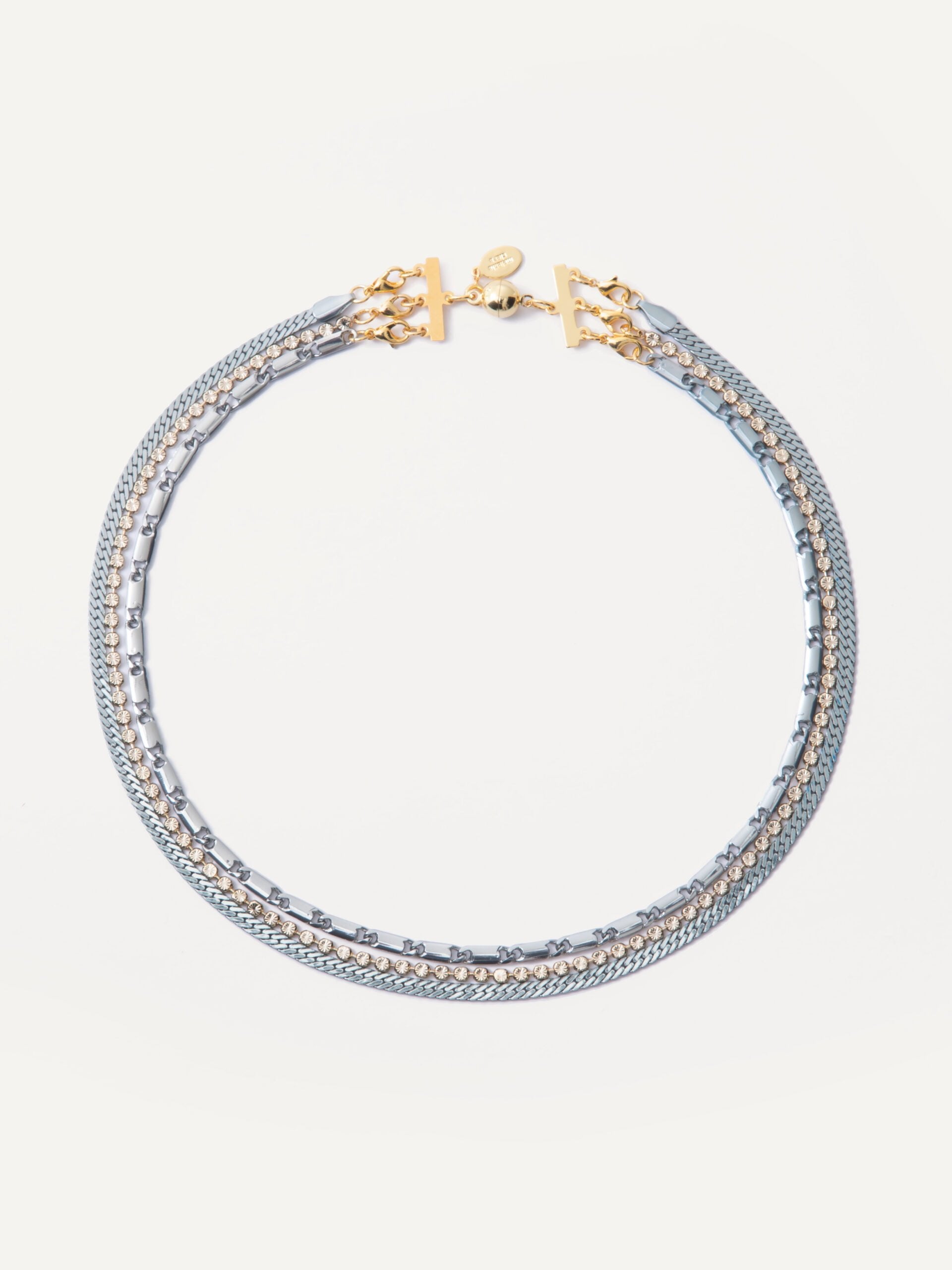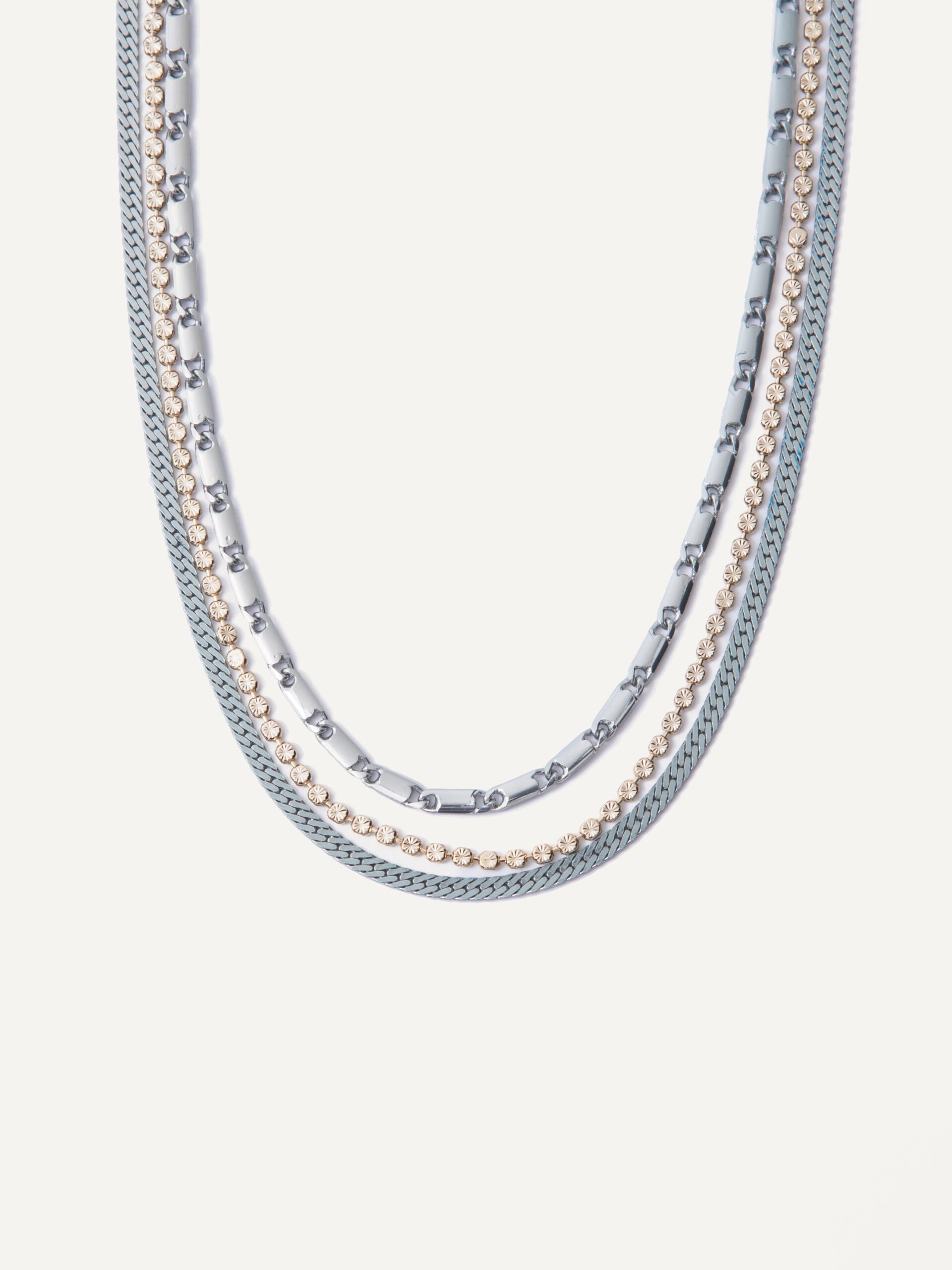 Introducing the Venice Necklace, a masterpiece of elegance and versatility. From delicate to bold, this triple-layered detachable necklace’s unique chains intertwine to create a harmonious blend of textures and styles.