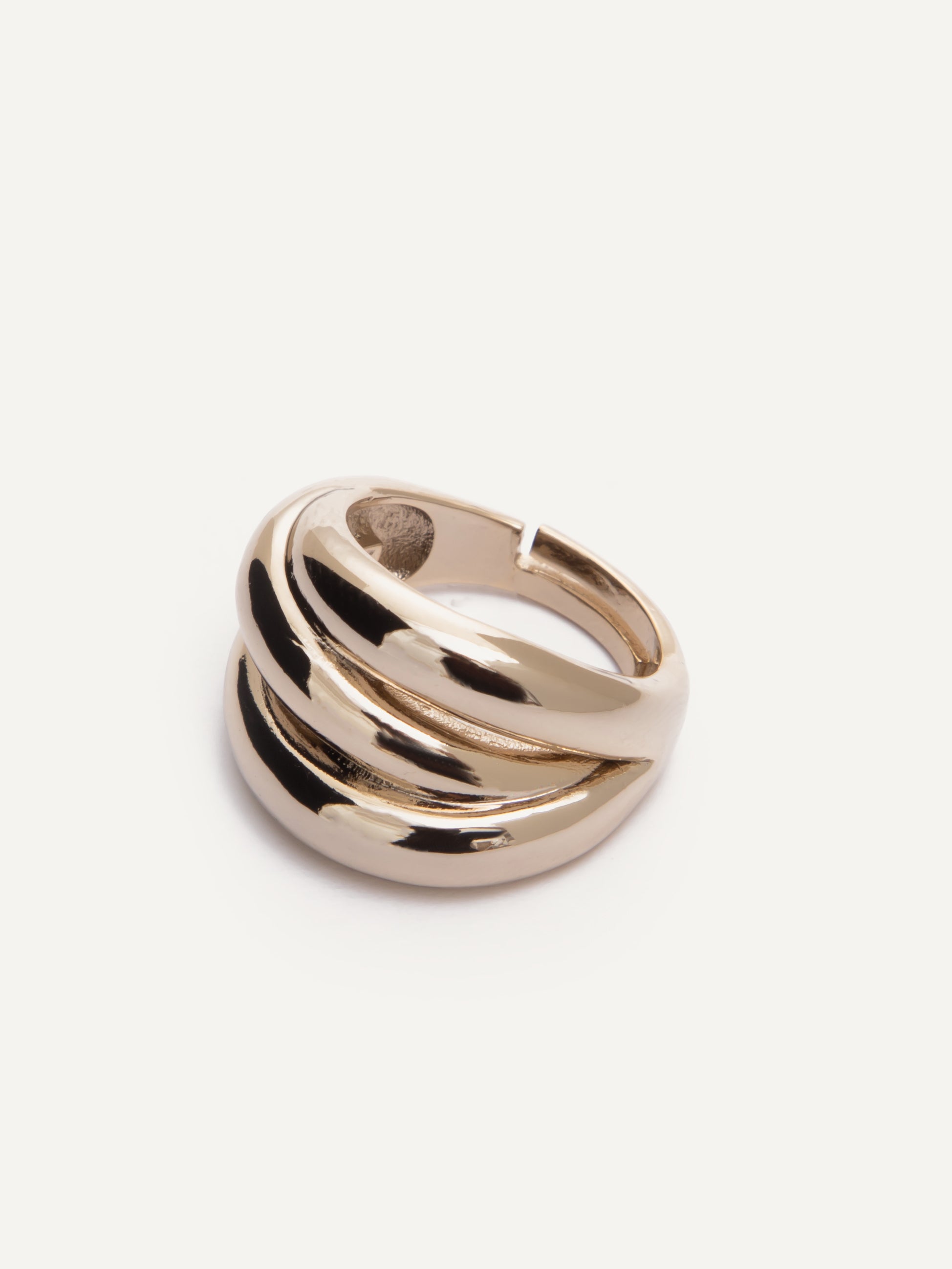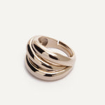 Introducing our limited edition Wynn ring: a stunning piece that features three sleek bands seamlessly fused with a smooth, glossy deep red metallic finish.