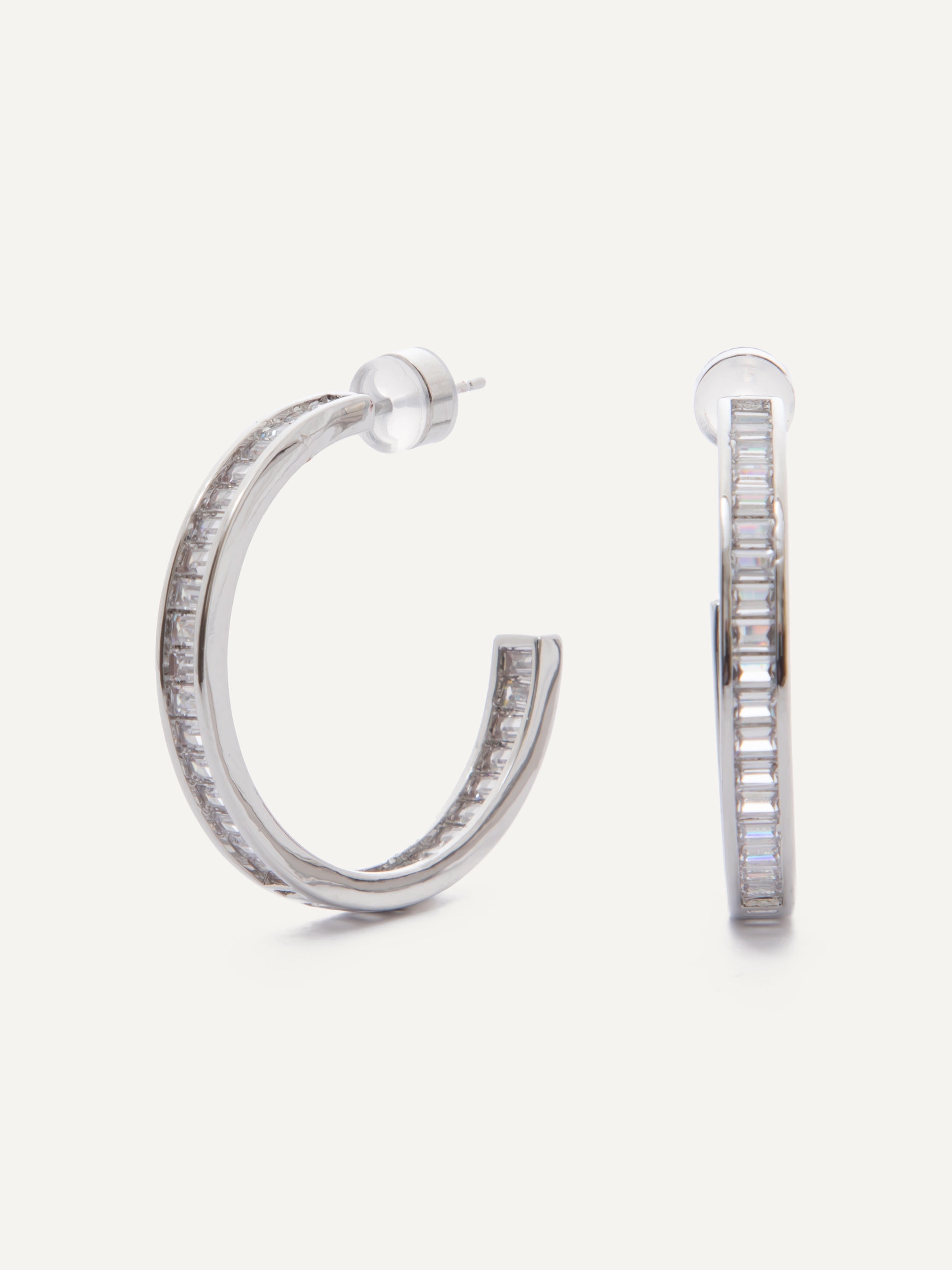 Sleek baguette-cut hoops that blend classic refinement with a modern, sculpted edge.